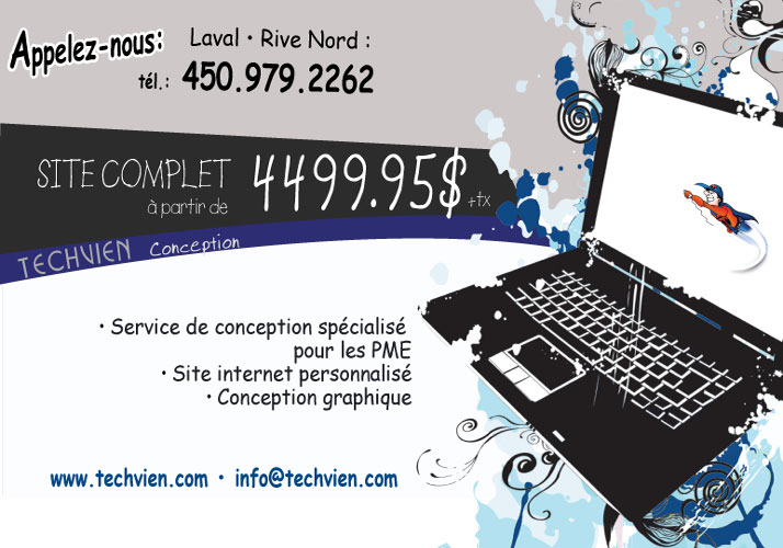 Il est important d'être présent sur l'internet compte tenu qu'il s'agit d'un moyen de recherche de plus en plus commun que ce soit à travers les moteurs de recherche Google, La Toile du Québec ou MSN. Votre compagnie ce doit d'avoir une place et une part de ce marché toujours en croissance. Nous sommes en mesure de créer votre site internet selon vos besoins et vos objectifs d'entreprise en vous offrant un forfait clé en main sur mesure. Vous pouvez aussi profiter de notre fofait ci-bas. STIL Informatique vous assure une vitrine professionnelle qui vous démarquera sans aucun doute de vos compétiteurs